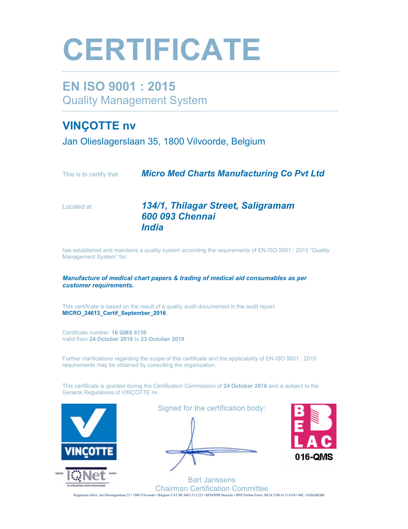 Micro Med Charts is a privately held ISO 9001: 2015 company, Certified by BVQ and categorized under medical Paper Manufacturing. A leading exporter of Medical Chart Papers Incorporated in the year 2005 in Chennai, a Southern part of India.